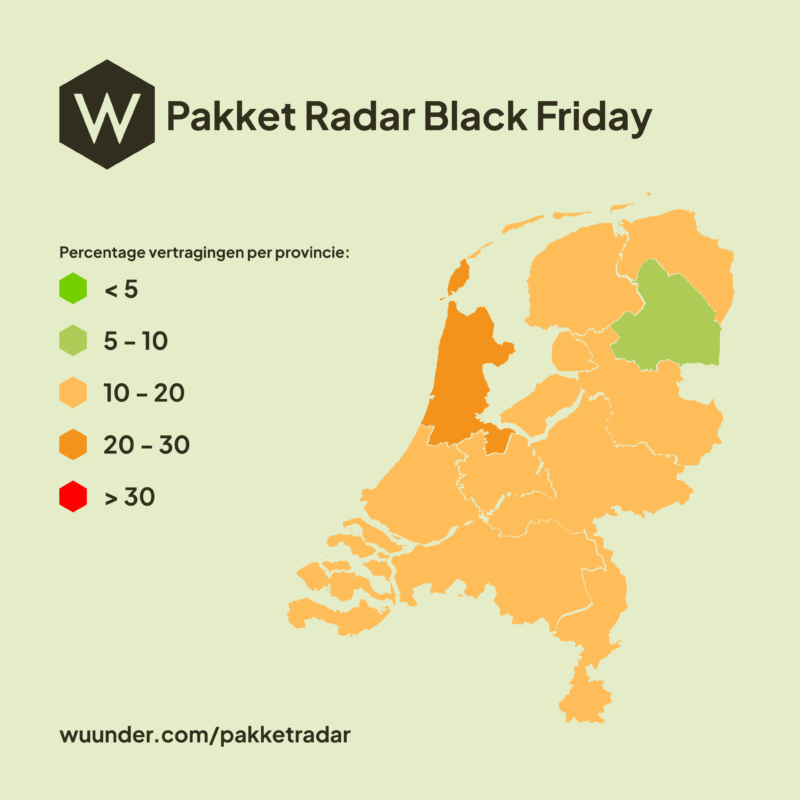 De landelijke vertragingscijfers lijken mee te vallen, maar er zijn wel verschillen te zien tussen de provincies. Zo werden in de provincie Zeeland de meeste vertraagde pakketten genoteerd: 18,3 procent kwam daar vertraagd aan gedurende de Black Friday periode. De laagste gemiddelde vertragingen werden gemeten in de provincies Overijssel en Drenthe, waar in beide provincies gemiddeld 12,6 procent van de bestellingen te laat werd bezorgd.